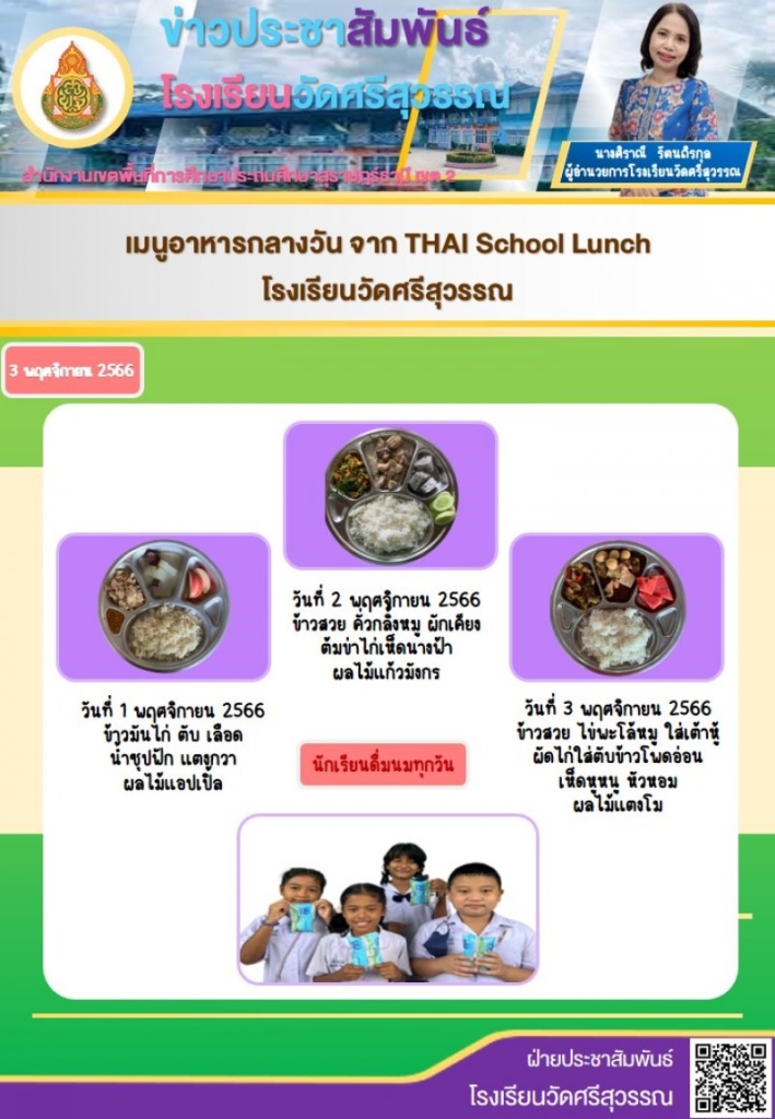 เมนูอาหารกลางวัน โรงเรียนวัดศรีสุวรรณ