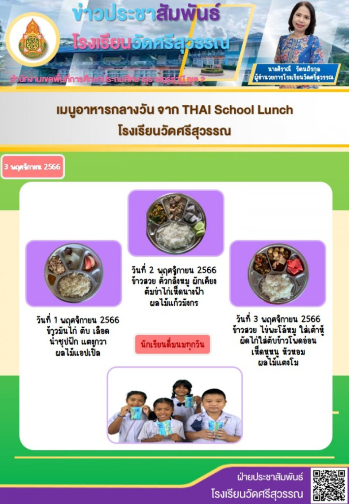 เมนูอาหารกลางวัน โรงเรียนวัดศรีสุวรรณ